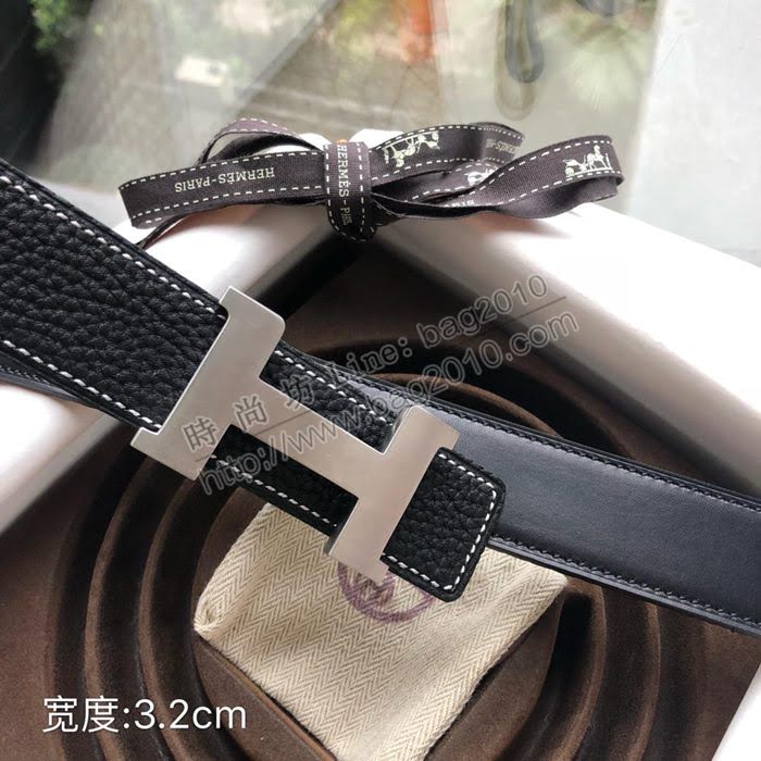 Hermes男款3.2cm精鋼焊點四角扣搭配雙面原版皮