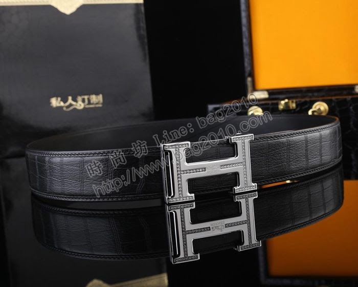 HERMES皮帶 專櫃品 新款野生鹿皮版 全手工包邊 純鋼鑲鑽扣 愛馬仕男士皮帶 hgh1943
