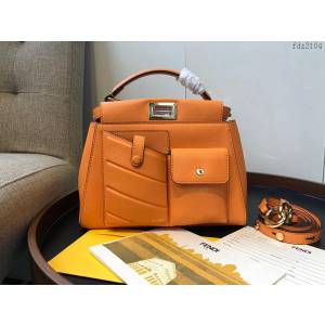 FENDI女包 頂級原單 小號手袋 單手柄手提包 橙色小牛皮 芬迪斜挎包 fdz2104