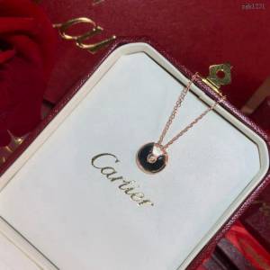 Cartier飾品 護身符耳釘項鏈 電鍍18k玫瑰金 黑瑪瑙 卡地亞女項鏈 zgk1231