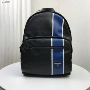prada男包 普拉達專櫃2020爆款 2VZ066 Prada新款雙肩包 Prada男士後背包 黑+黑+藍 pyd2039