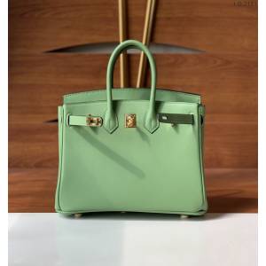 Hermes女包 愛馬仕Birkin25 swift皮 手工縫製 油果綠金扣 Hermes鉑金手提包 tdh2151