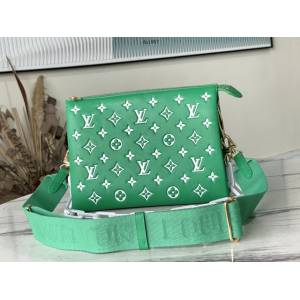 LV專櫃2023新款Coussin小號手袋 M20760 綠色路易威登壓紋蓬鬆牛皮革肩背斜挎包 dn1067