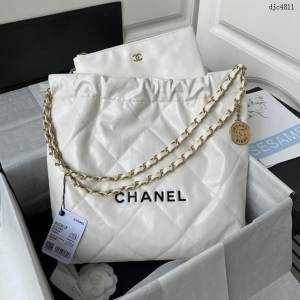 Chanel專櫃2022S春夏火爆22 bag購物袋 AS3260 香奈兒白色/黑字鏈條肩背包 djc4811