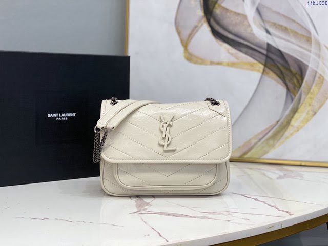 YSL爆款女士包包 聖羅蘭經典款油蠟抓皺牛皮小號郵差包 YSL肩背斜挎包 533037  jjh1098