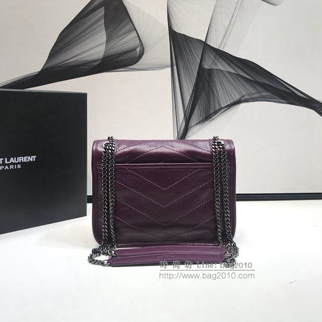 YSL爆款女士包包 聖羅蘭經典款Niki油蠟抓皺牛皮小號郵差包 YSL肩背斜挎包 533037  jjh1185