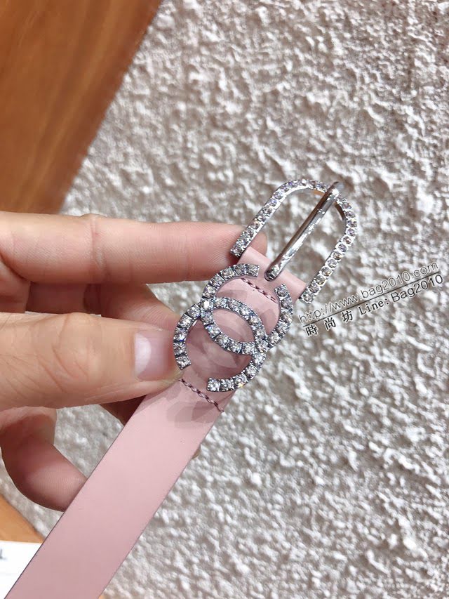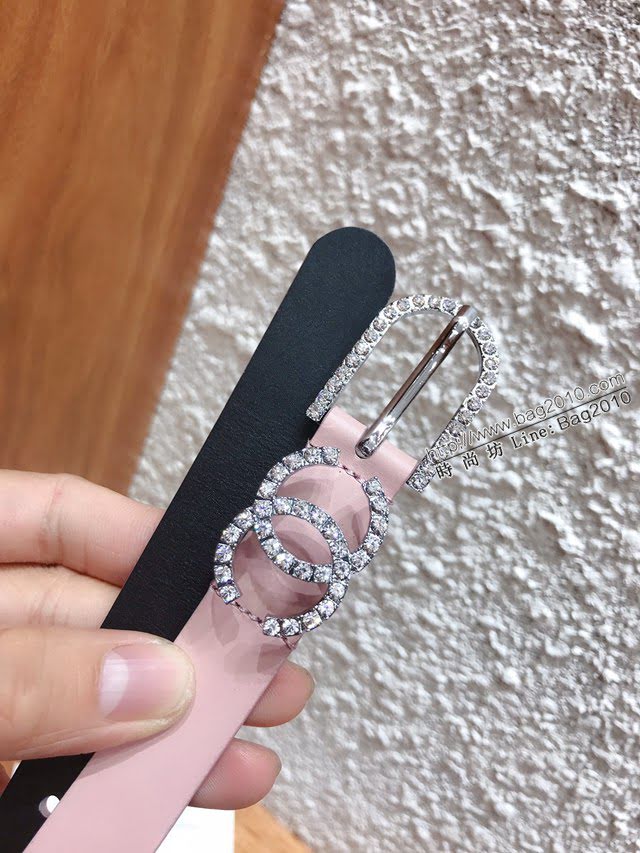 Chanel女士皮帶 香奈兒鑲嵌鑽石針扣小腰帶 香奈兒雙面可用小牛皮皮帶  jjp1095