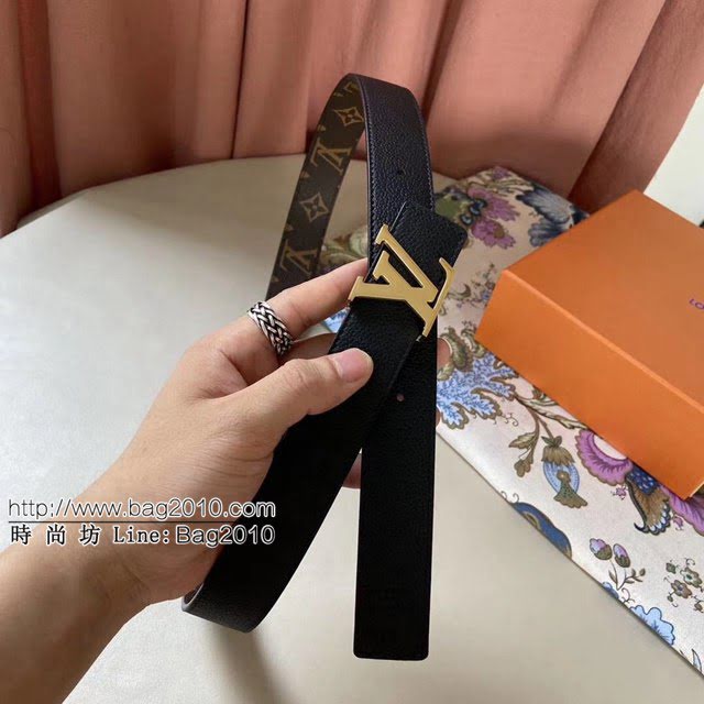 LV新款女士皮帶 路易威登Initiales雙面小牛皮腰帶 jjp1230