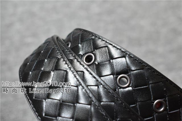 BV經典款 男士腰帶 雙面小牛皮 編織工藝搭配槍色磨砂帶頭 寬度40mm 黑色