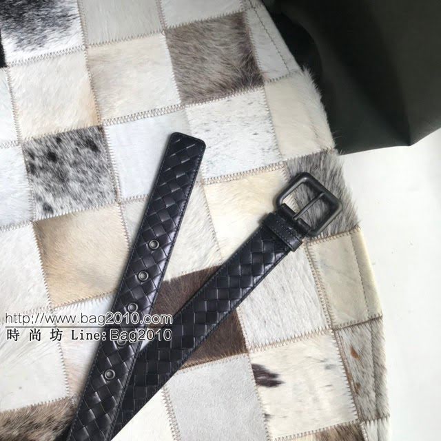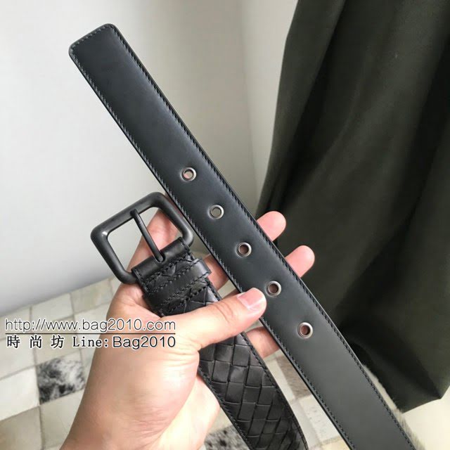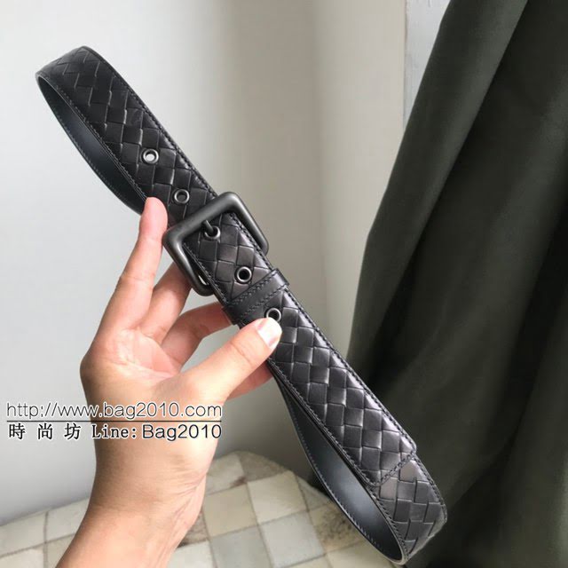 BV經典款 男士腰帶 頂級胎牛皮面,小牛皮底,編織工藝搭配槍色磨砂帶頭 ,寬度35mm,黑色!