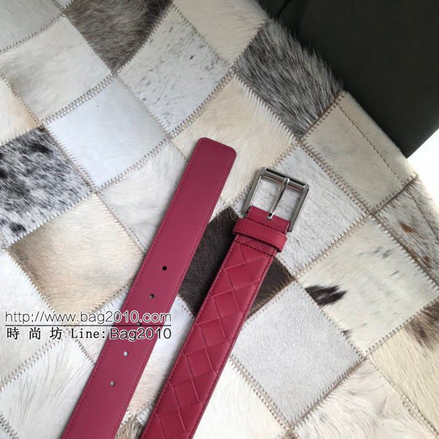 Bv新款男士腰帶 加大版intreccio編織 義大利進口雙面啞光小牛皮 精品全銅銀色扣寬度35mm 波爾多紅/波爾多紅