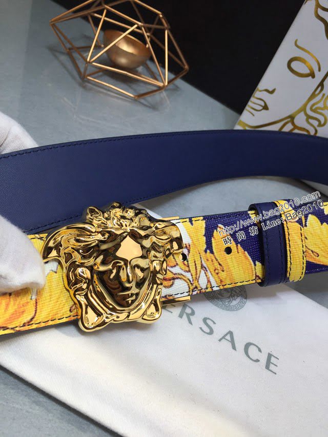 由柔軟的薩菲亞諾皮革製成,這個可逆的皮帶具有單色,一面誇耀金巴洛克印刷。具有三維美杜莎扣。4.0cm寬