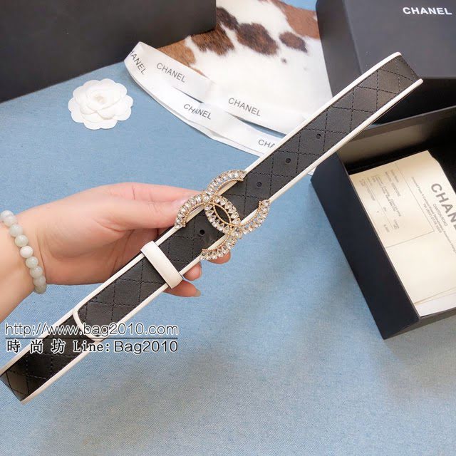 Chanel女士皮帶 香奈兒雙面牛皮銅鑽五金扣腰帶  jjp1958