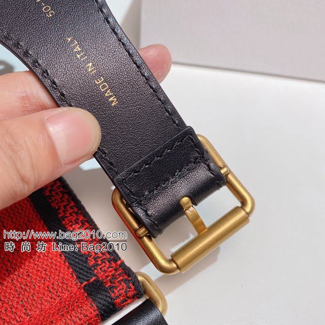#Dior#迪奧2020新款復古金扣字母logo腰帶帆布皮帶65 毫米紅色和黑色“Christian Dior”標誌提花刺繡腰封
