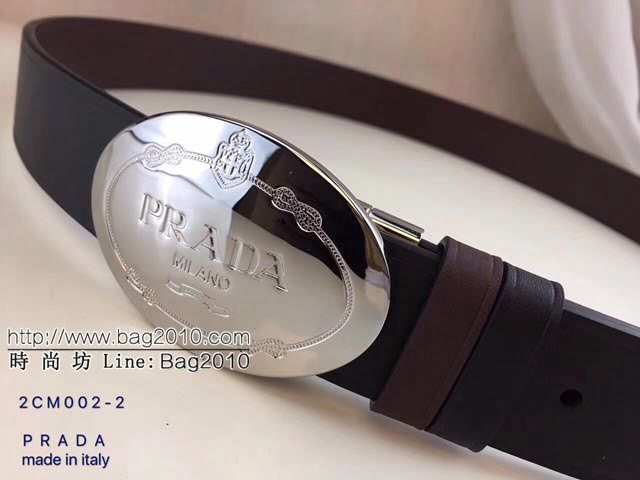 PRADA男士皮帶 普拉達烏木色牛皮雙面用腰帶  jjp2024