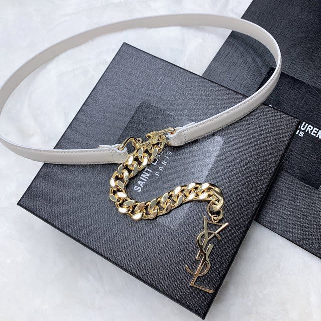 Saint Laurent女士皮帶 聖羅蘭YSL鏈條五金小牛皮腰帶  jjp2146