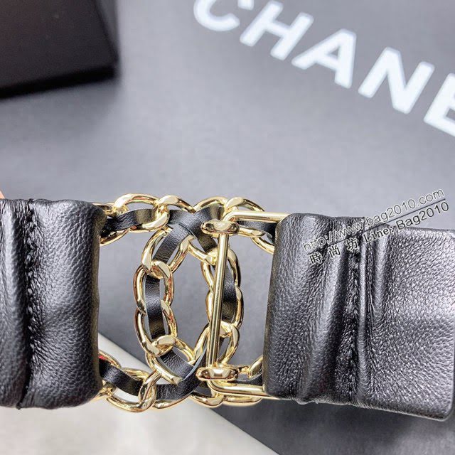 Chanel女士皮帶 香奈兒經典小羊皮鬆緊褲腰帶 香奈兒褶皺腰帶  jjp2148