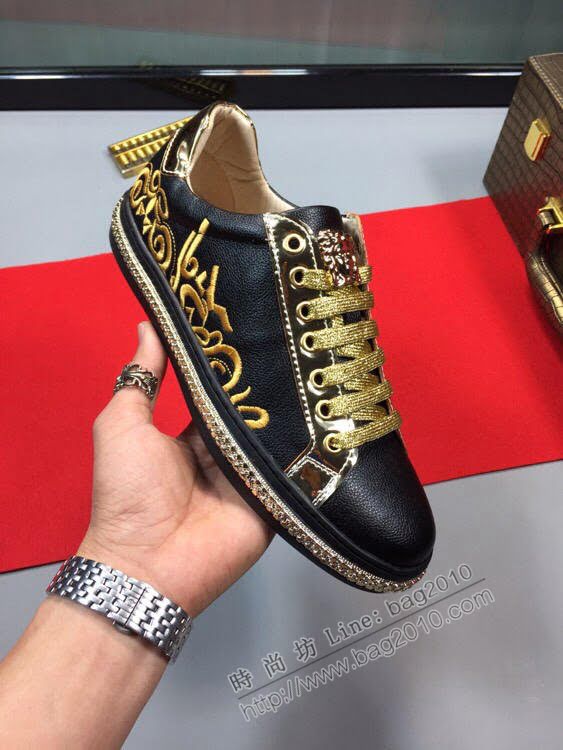 VERSACE男鞋 最新款男鞋 牛皮搭配電繡圖案 範思哲休閒男板鞋 jpx1408