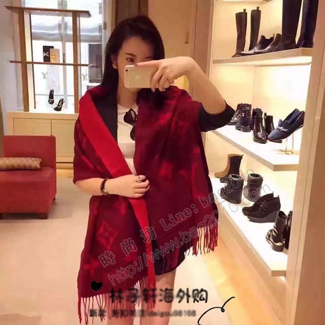 LV圍巾 路易威登REYKJAVIK羊絨圍巾 經典logo圖案LV披肩 羊羔絨羊絨長巾  llwj6453