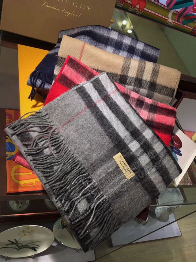 Burberry圍巾 雙面金線山羊絨圍巾 巴寶莉經典羊絨格子長圍巾  llwj6518