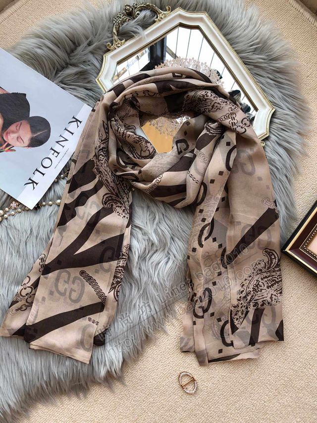GUCCI圍巾 經典雙層真絲系列 古馳直絲巾 gg提花飄帶鎖鏈圖案 GUCCI女長圍巾 llwj6548