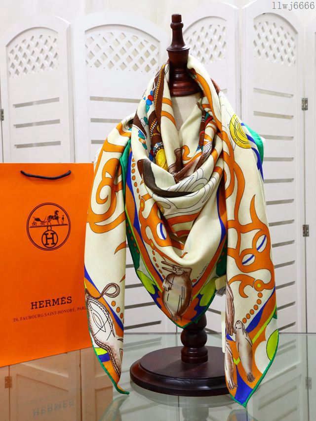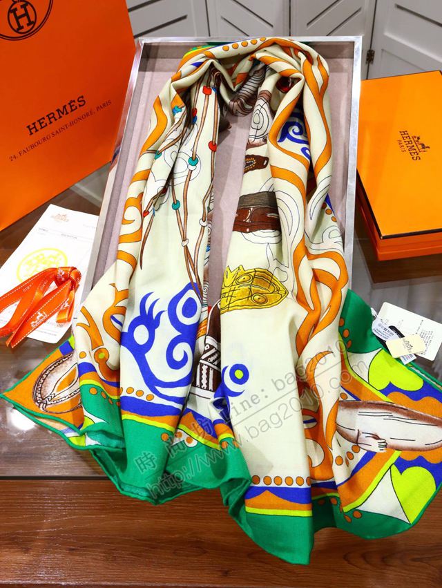 HERMES圍巾 愛馬仕專櫃新品 真絲羊絨圍巾 愛馬仕經典女方巾  llwj6666