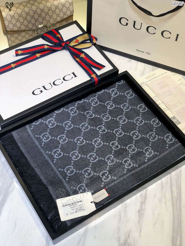 GUCCI圍巾 頂級絲羊毛 經典花色和字母圖案 古馳山羊絨GG大提花長圍巾  llwj6678