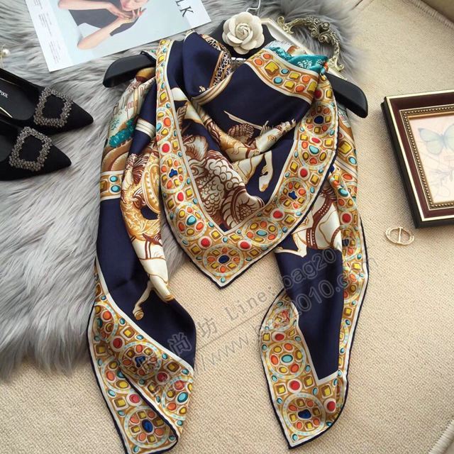 HERMES圍巾 愛馬仕女絲巾 專櫃新品真絲緞面燙金大方巾 llwj6719