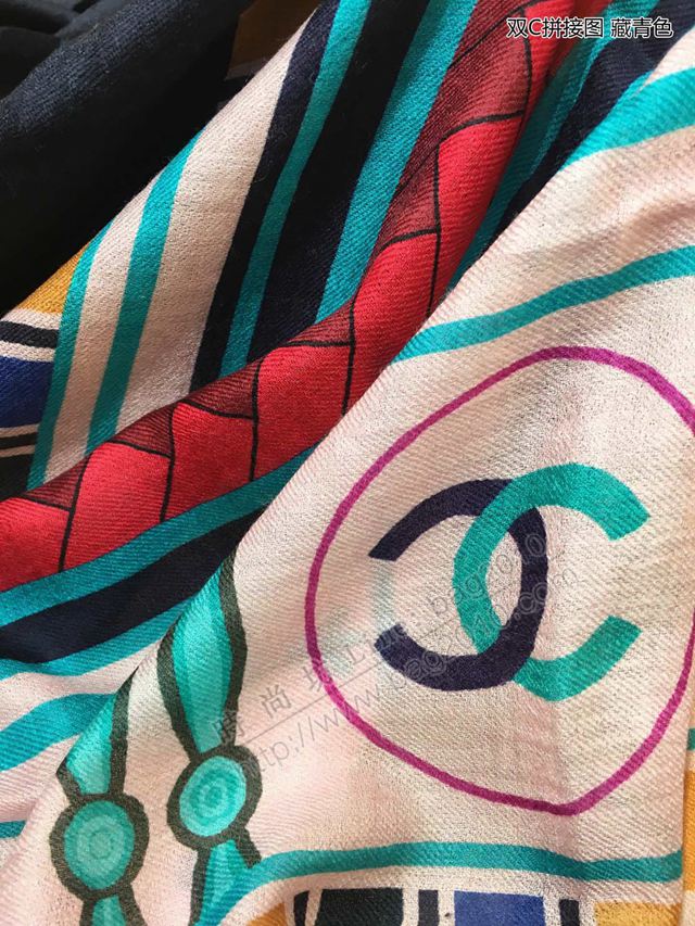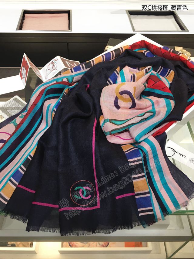 CHANEL圍巾 秋冬新款 雙C拼接圖羊絨長巾 香奈兒頂級純山羊絨女圍巾  llwj6749