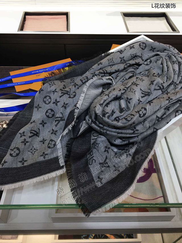 LV圍巾 路易威登經典真絲+40%羊毛圍巾 L花紋裝飾 LV碎花大方巾  llwj6822