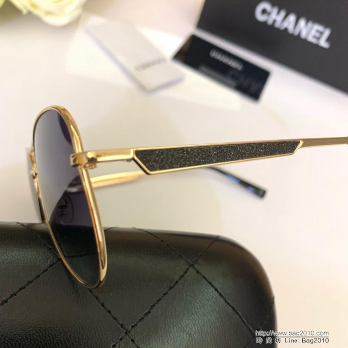 CHANEL香奈兒新款 高品質 女款閃片金屬腿 休閒蛤蟆鏡 金屬飛行墨鏡