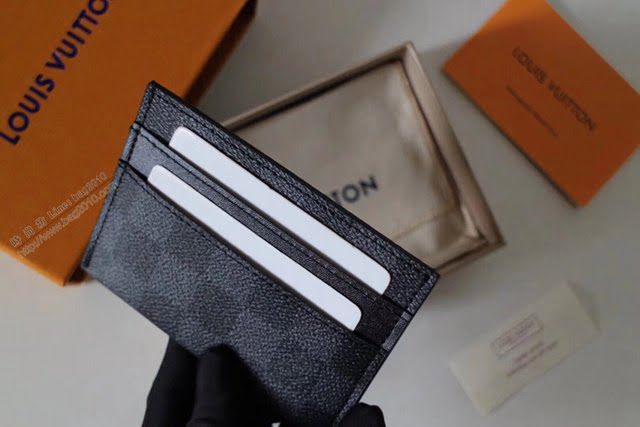 原单PORTE CARTES DOUBLE 卡片夹 M62170 此款采用全新Monogram Eclipse涂层帆布材质的卡片夹风格靓丽而时髦,体积小巧,可轻松收入口袋中。配有中央口袋与四个插槽,可存放信用卡、飞机与车船票以及名片。11.0x 7.0x 0.6 cm (长x 高x 宽)