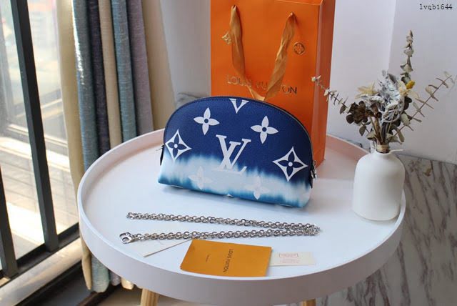 M69139大號鏈條藍色 本款化妝包於 2020 夏季躋身 LV Escale 配飾及皮具系列。Monogram Giant 帆布呈現嶄新紮染印花,充裕空間、拉鏈廣口及可水洗內襯成就日常或旅途的理想之選。詳細特徵22.0 x 15.0 x 6.0 cm (長 x 高 x 寬)