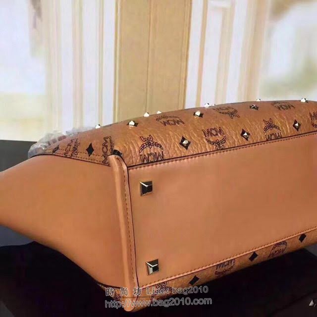 MCM女包 原單 純手工方釘 MCM單肩購物袋 原版pvc配牛皮 ykk拉鏈 MCM女肩背包  mdmc1015
