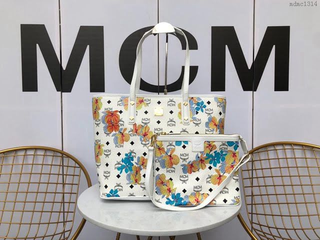 MCM女包 原單 Essential頂部拉鏈購物包 花卉圖案 MCM手提袋 MCM女單肩包 mdmc1314