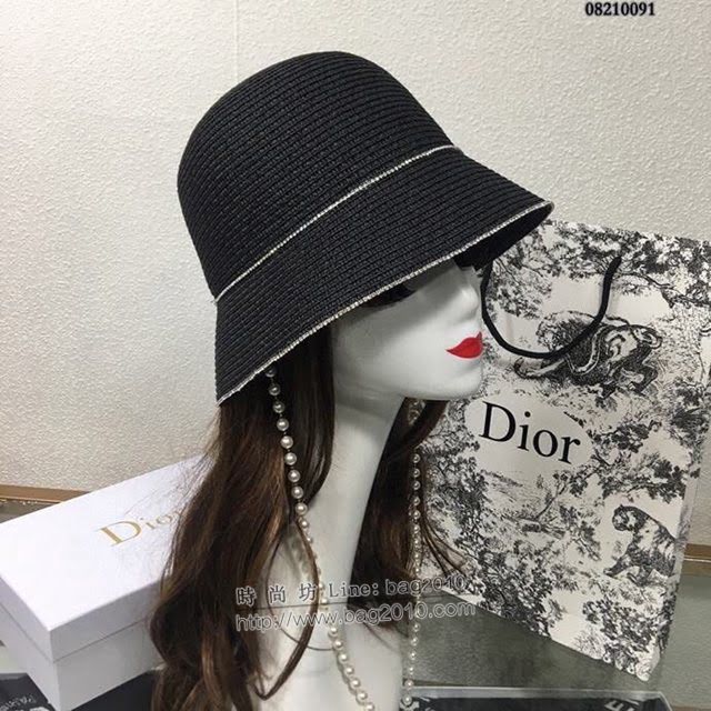 Dior女士帽子 迪奧軟草草編草帽盆帽漁夫帽 Dior帶鑽帶珍珠鏈條禮帽  mm1098