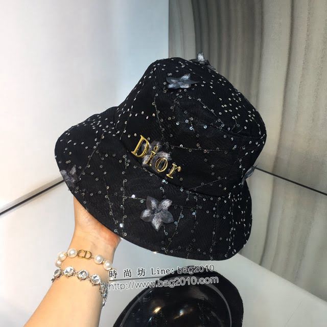 Dior女士帽子 迪奧立體花朵亮片漁夫帽遮陽帽 mm1225