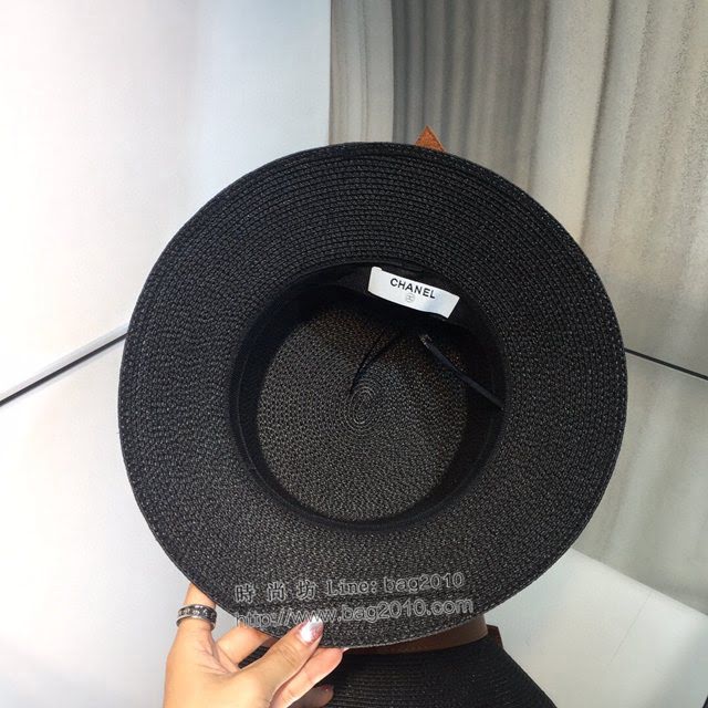 Chanel新品女士帽子 香奈兒小香拼接草帽遮陽帽  mm1512
