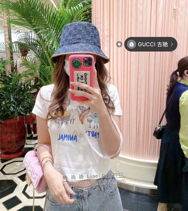 Gucci男女同款帽子 古馳GG牛仔藍漁夫帽遮陽帽 mm1582