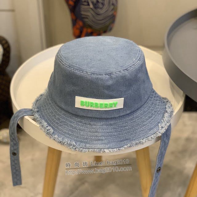 Burberry男女同款帽子 巴寶莉新款重工洗水牛仔加防風繩漁夫帽遮陽帽 mm1650