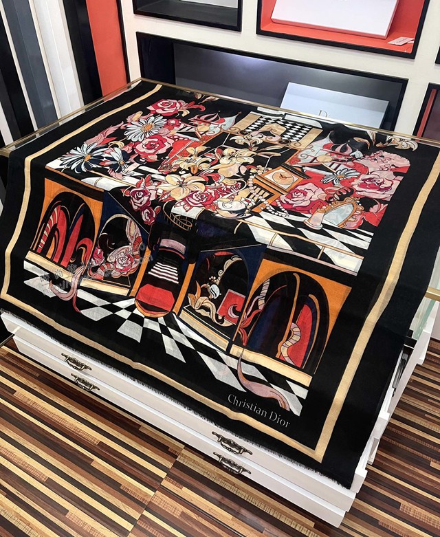 Dior秋冬新款女士羊絨披肩圍巾 迪奧戒指絨長巾 mmj1202