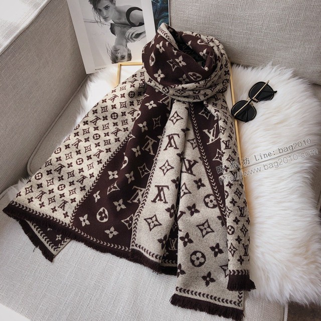 Louis Vuitton女款披肩圍巾 路易威登經典Monogram圖案大圍巾 LV拼色字母邊框提花圍巾  mmj1341