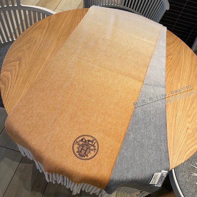 Hermes女款羊絨圍巾 愛馬仕秋冬新品漸變拼色羊絨圍巾 mmj1402