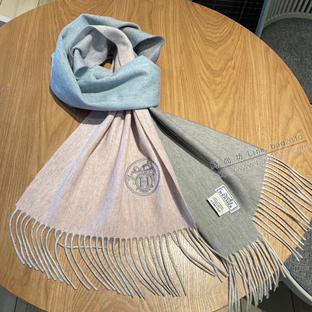 Hermes女款羊絨圍巾 愛馬仕秋冬新品漸變拼色羊絨圍巾 mmj1405