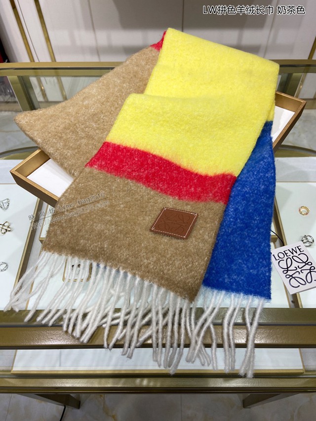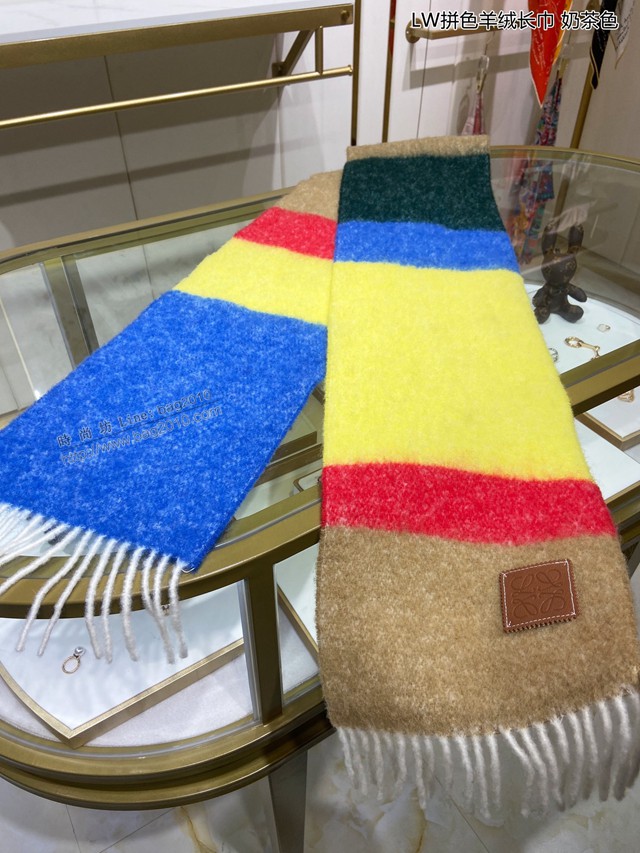 loewe女士圍巾 羅意威2021款拼色羊絨長巾 mmj1419