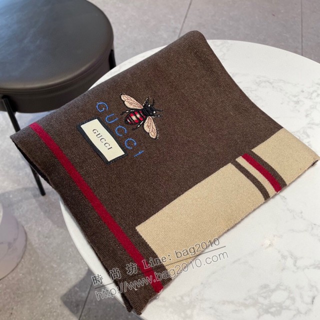 Gucci高端品質針織拼接圍巾 古奇GG針織蜜蜂羊絨針織男女款圍巾  mmj1512