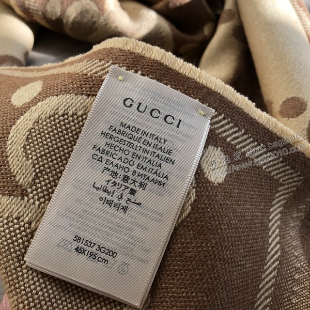 Gucci經典羊絨長巾 古馳經典雙G老花圍巾披肩 古琦最新奶茶色圍巾 mmj1597