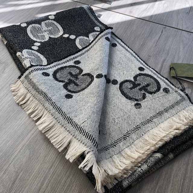 Gucci金銀絲線長巾 古馳高版本雙面圍巾 古琦字母提花圍巾 mmj1600