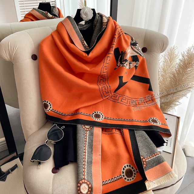 Hermes秋冬季羊絨保暖披肩圍巾 愛馬仕仿羊絨提花女士圍巾 mmj1657