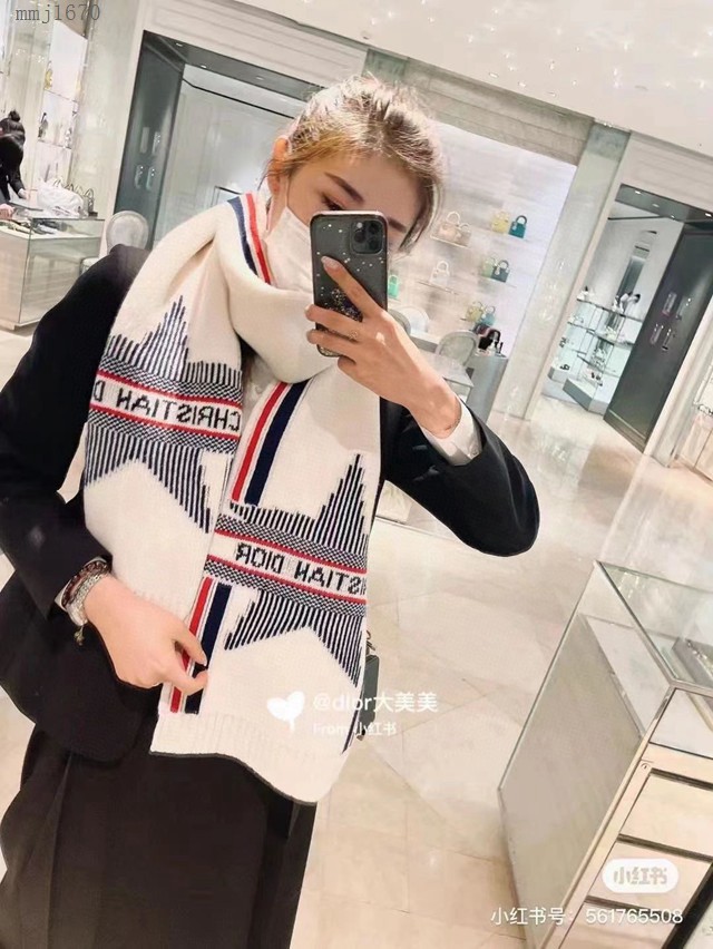 Dior秋冬新款披肩圍巾 迪奧撞色五角星幾何條形針織羊絨圍巾 mmj1670